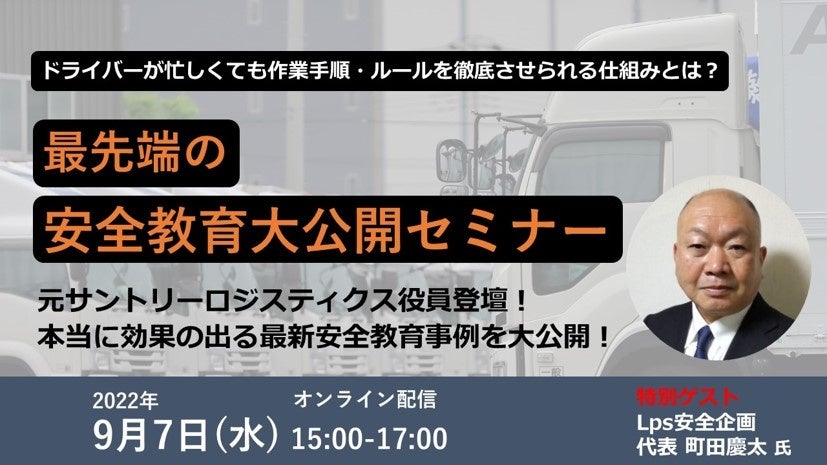 | タイトル | 最先端の安全教育大公開セミナー ~ドライバーが忙しくても作業手順・ルールを徹底させられる仕組みとは?~ |