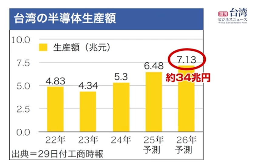 台湾の半導体業界の26年生産額予測、過去最高の7.1兆元