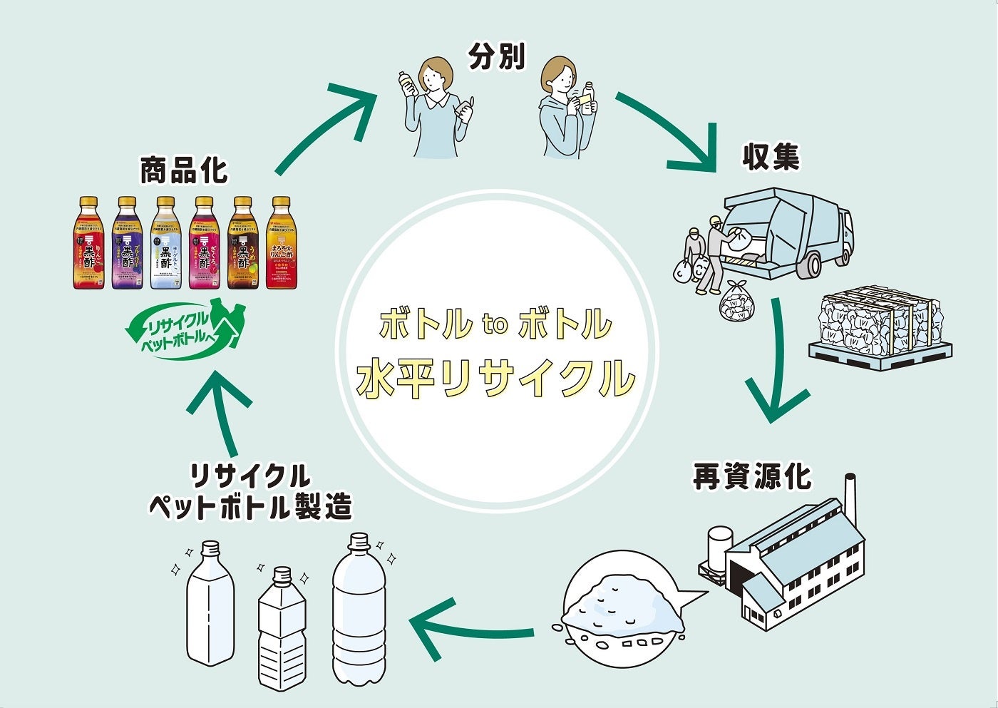 本協定により、半田市において排出・回収される使用済みペットボトルを「ボトルtoボトル」水平リサイクルとして繰り返しリサイクルすることが可能になります。ミツカンはこのリサイクルペットボトルを一部商品に使用していきます。