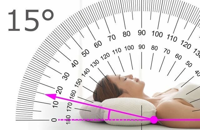 首にすき間が出来ず、フィットすることで気道を確保しやすい約15℃の角度に!