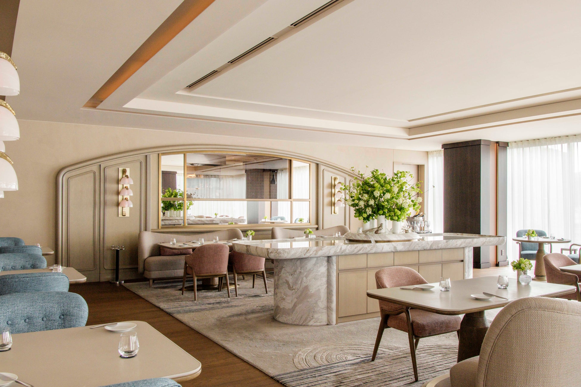 「SÉZANNE (セザン)」は2021年7月に開業して以来、東京のガストロノミーシーンを代表するレストランとしての地位を確立しました。香港を代表する建築家アンドレ・フーによるラグジュアリーかつリラックス感に満ちた空間で、都会の景観を眺めながらアペリティフを楽しむ「サロン」、臨場感あふれるキッチンが見えるコンテンポラリーな「メインダイニング」、シェフの技を間近に感じていただける個室「シェフズテーブル」の3つの異なるエレメントで構成され、最高の美食体験をお約束します。