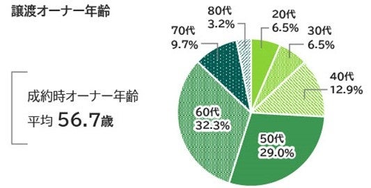 ・成約時オーナー年齢は平均56.7歳。50~60代が約6割の構成に。