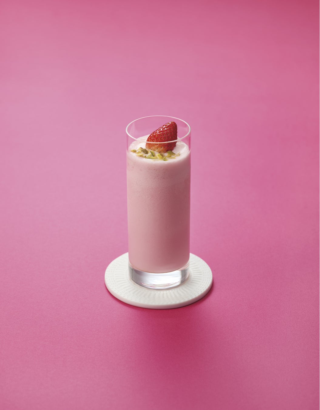 濃厚なラッシーに負けない糖度と適度な酸味と風味が特長の「いばらキッス」を使用したいちごラッシー。デザート替わりになる贅沢なラッシーです。