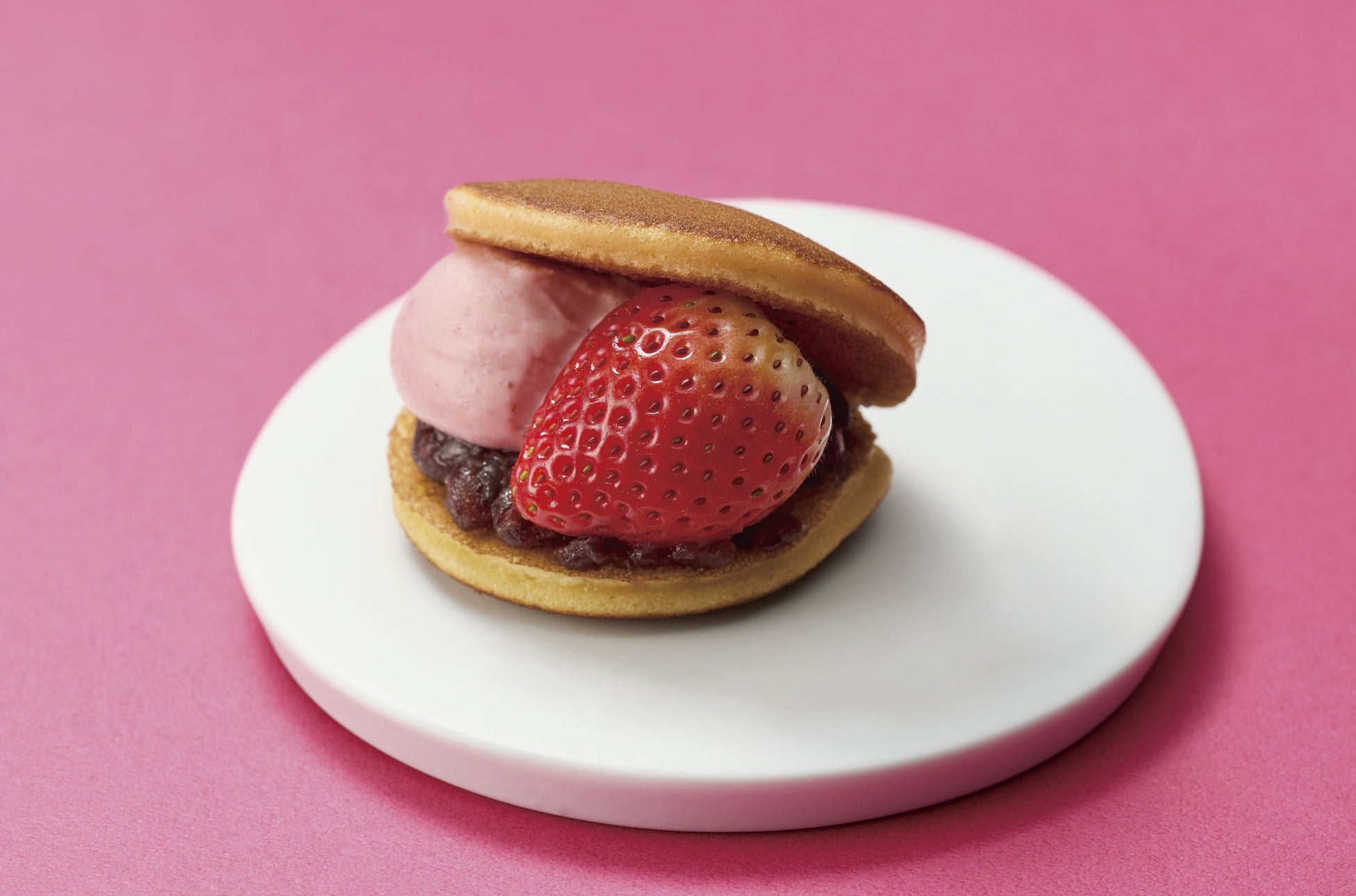 いばらキッスといちごクリーム、餡をはさんだミニサイズのどら焼きです。