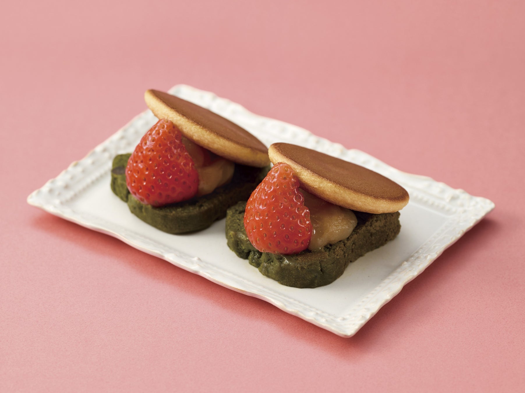 抹茶あんこブラウニーの上にたっぷりの白いんげん餡といばらキッスをのせ、どら焼きの生地を添えました。いばらキッスのほどよい酸味と白いんげん餡の優しい甘さが口いっぱいに広がります。