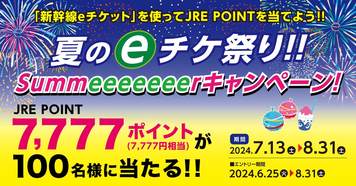 JRE POINT 7,777 ポイントが抽選で 100 名さまに当たる! 「夏の e チケ祭り!!Summeeeeeeer キャンペーン!」
