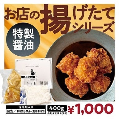 新登場!「お店の揚げたてシリーズ」では、お客様に“ひと手間”だけ加えて頂く事により、お店のサクサク&ジューシーなからあげを、ご自宅で楽しんで頂ける新商品となります。味はイルボチキン定番の「特製醬油」と「紅しょうが」の2種類からスタート、内容量も「400g」と増量いたしました!さらに漬込み肉は、揚げるだけではなく、煮物や炒め物にも味付け無しで美味しくお召し上がりいただけます。「お店の揚げたてシリーズ」ぜひ皆様ご賞味ください!