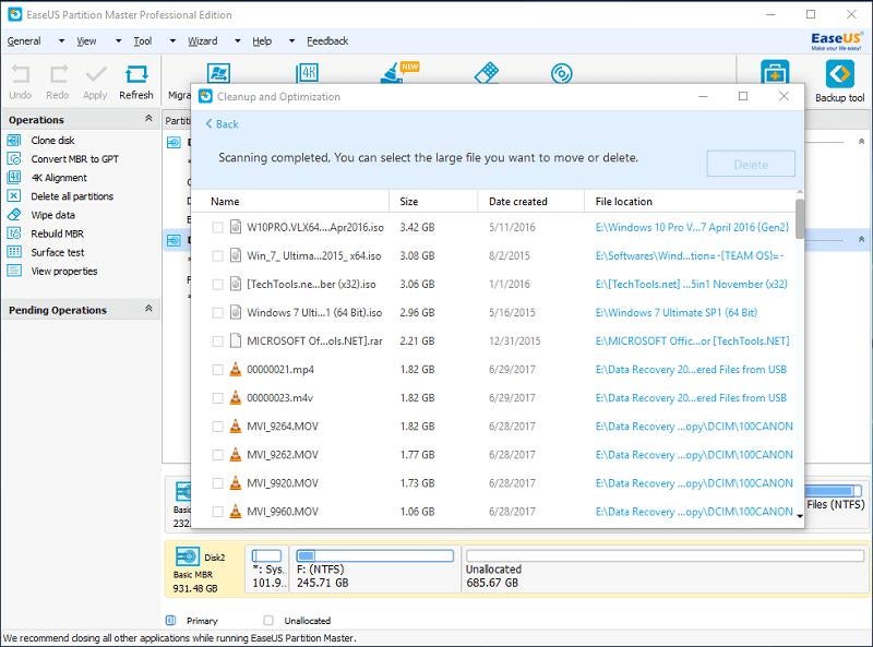 ツールバーから「大きなファイルのクリーンアップ」を選択します。クリーンアップするファイルサイズのしきい値を指定します。「スキャン」をクリックしてファイルをスキャンし、「OK」をクリックしてファイルを削除します。