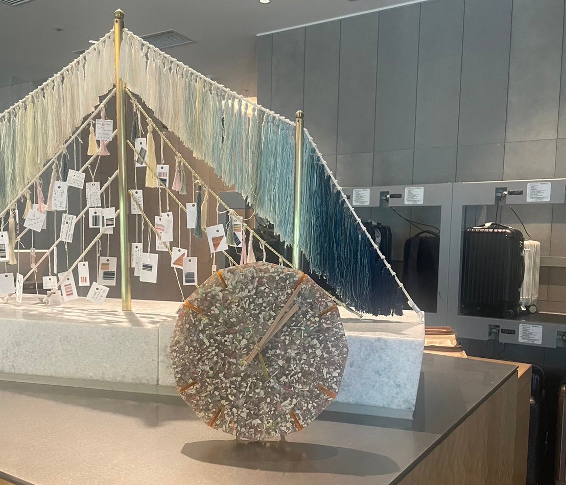ホテル5館共同で集めた約51キロの廃プラスチックから、一点物のアップサイクル時計を制作・展示