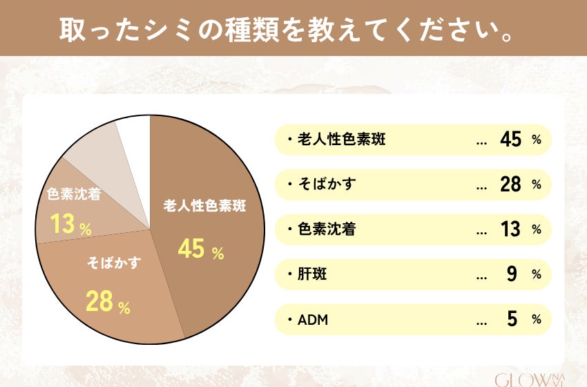 取ったシミの種類について「老人性色素斑(加齢によるシミ)」と答えた人が約半数