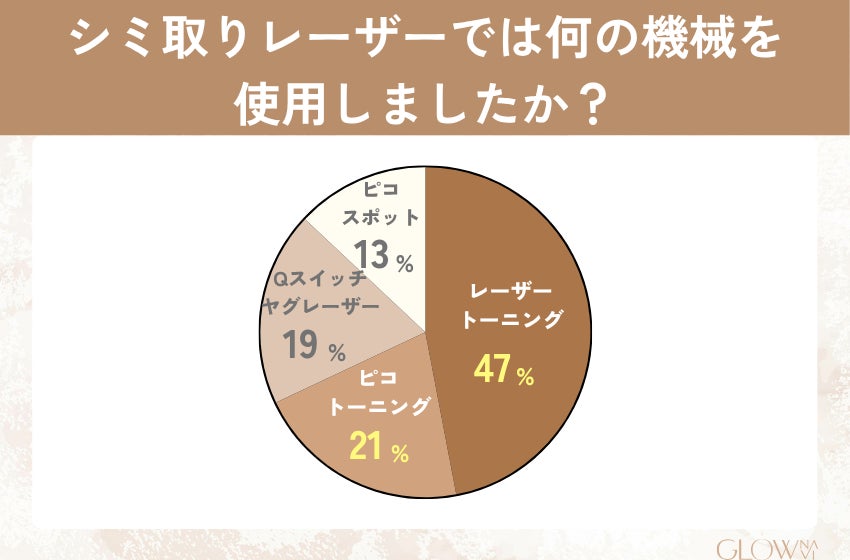 シミ取りの際に使用した機械は「レーザートーニング」が47%と最も多い