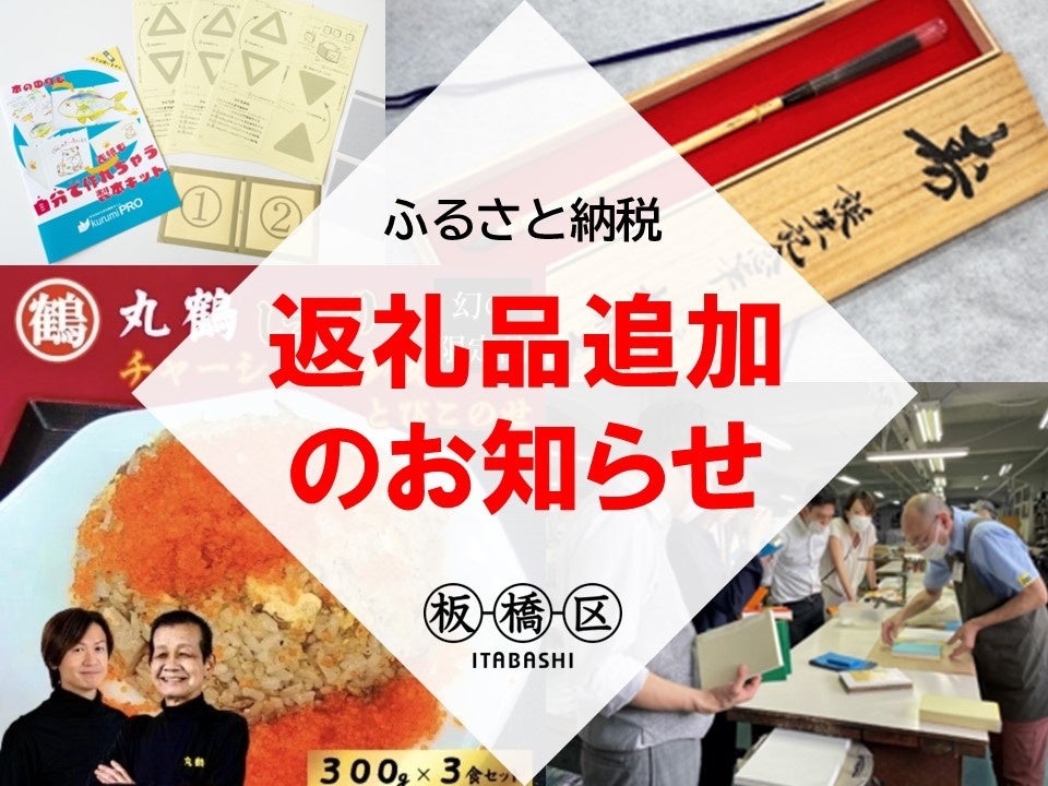 東京都板橋区は、ふるさと納税制度を活用した板橋区への寄付に対する返礼品に、3ジャンルの返礼品を追加しました。返礼品の拡充により、ふるさと納税を通じたご寄付へのお返しとして、より多くの方のニーズに応えていくとともに、区及び区の誇る地域資源を、より広く、全国にPRしていくことがねらいです。