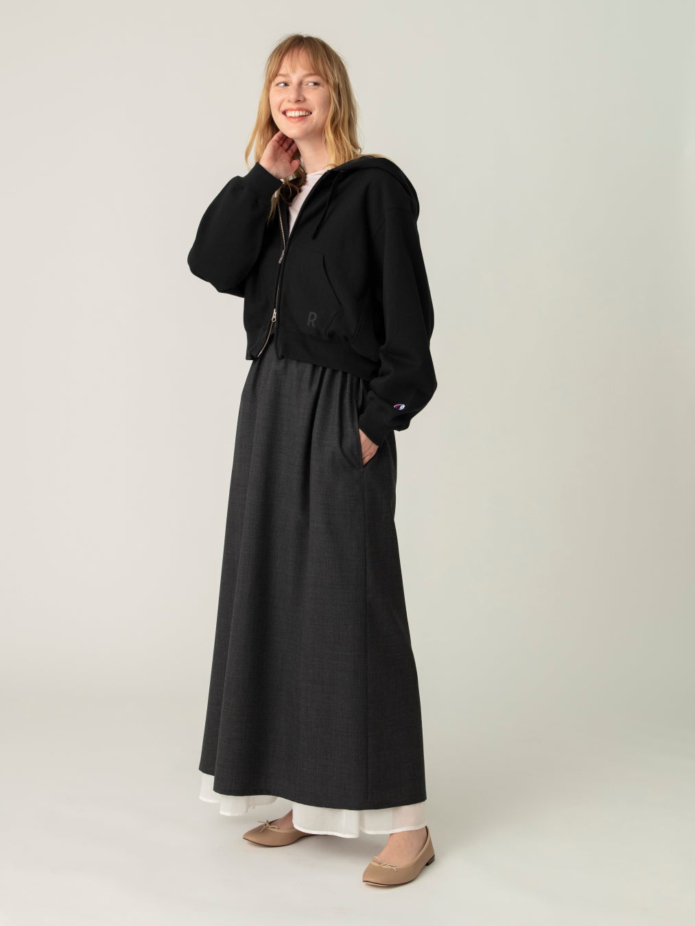 季節の変わり目に重宝するダブルジップフーディをデイリーかつファッショナブルに楽しめるよう、ワードローブに心強いアイボリー・グレー・ブラックの3色展開します。着丈を程よく短くしコンパクトなシルエットに仕上げました。また、ポケット部分にさりげなく施された「R」ロゴがポイントです。シンプルなデザインだからこそ、カジュアルからキレイめなスタイリングまで様々なコーディネートに取り入れて、春のオシャレをお楽しみください。