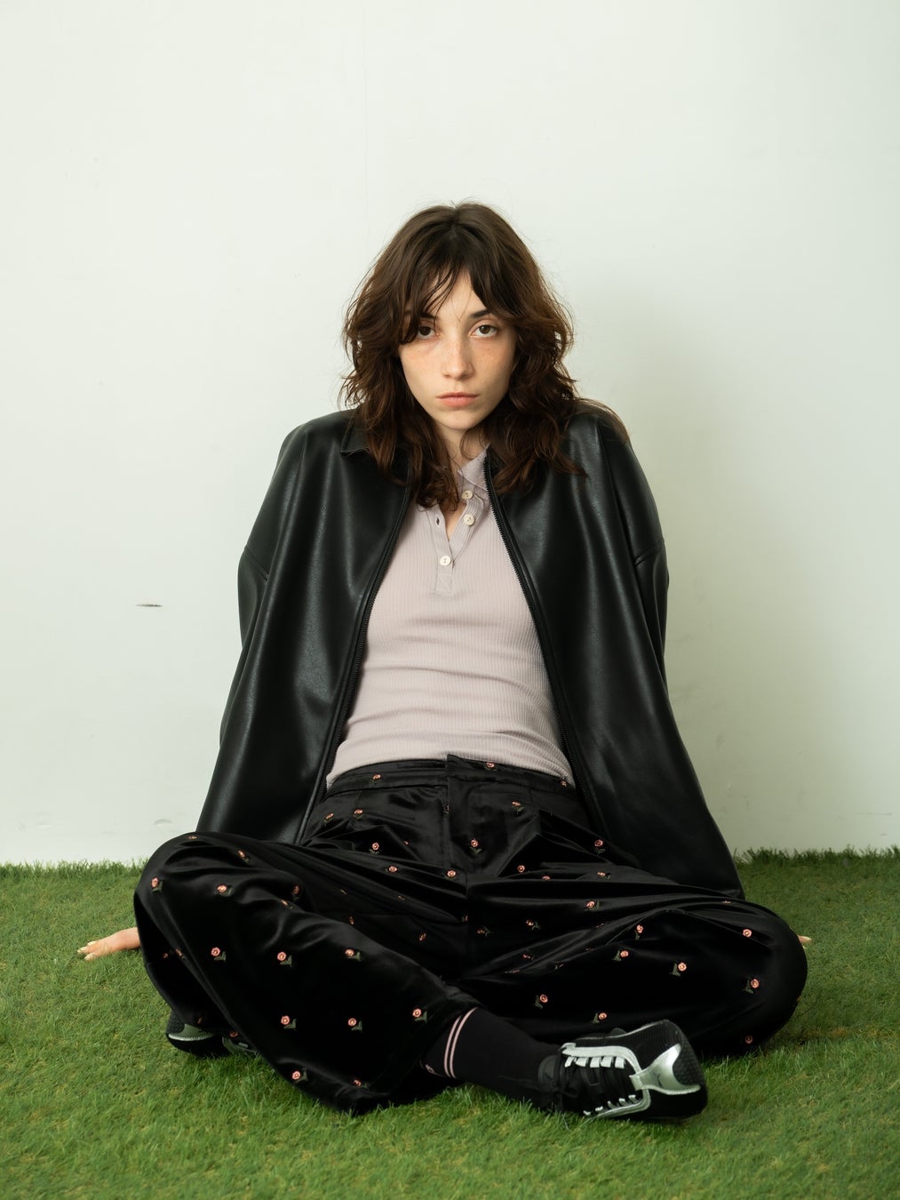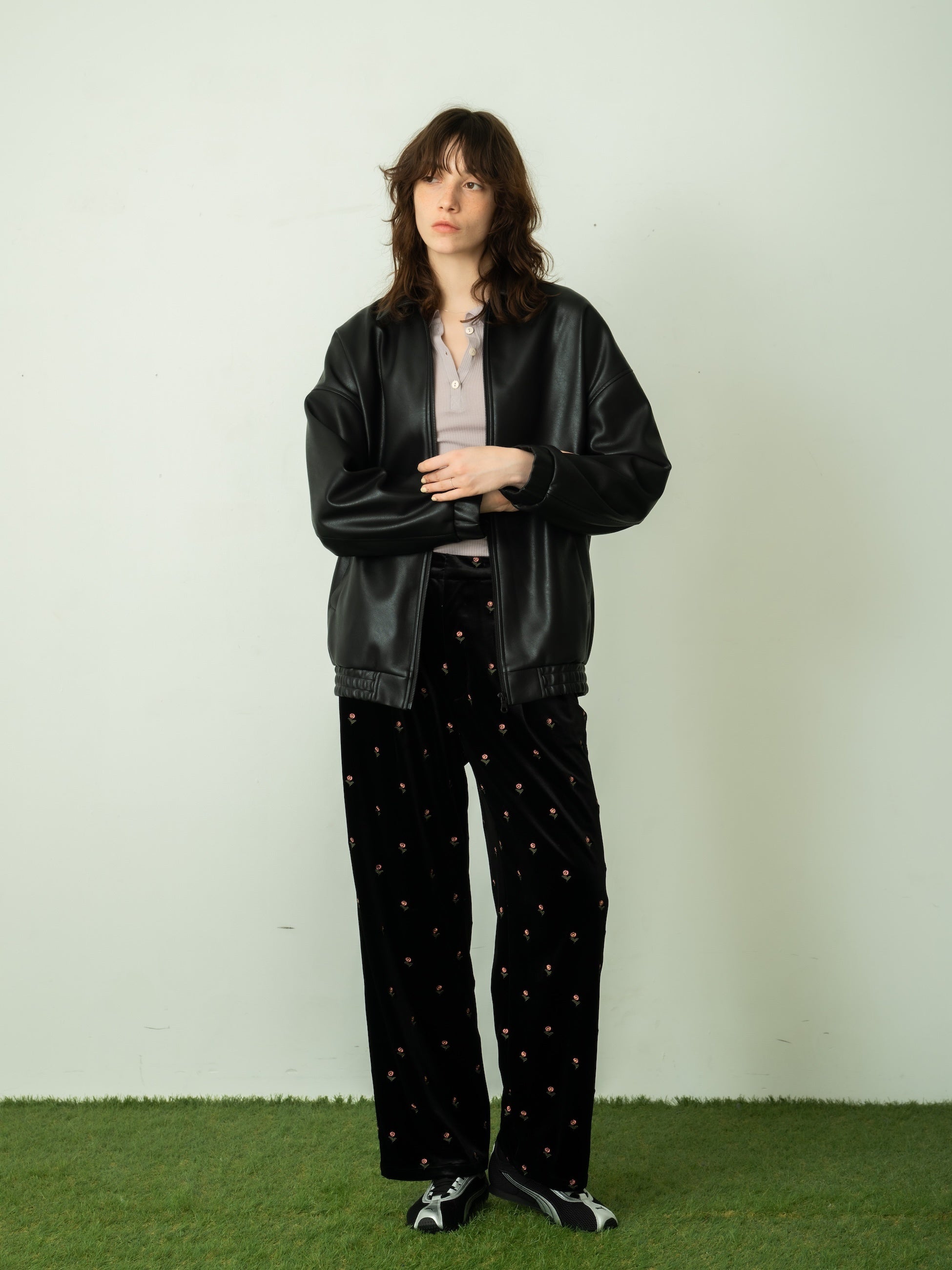 実用性が高く、日常使いがしやすいエコレザーを使用したジャケットが登場。とても柔らかく肌触りのよい素材感とオーバーサイズで丸みのあるシルエットがハードになりすぎず、女性らしさを演出します。