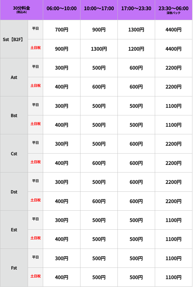 ✦【料金体系】300円から利用可能、深夜パックでお得に長時間利用