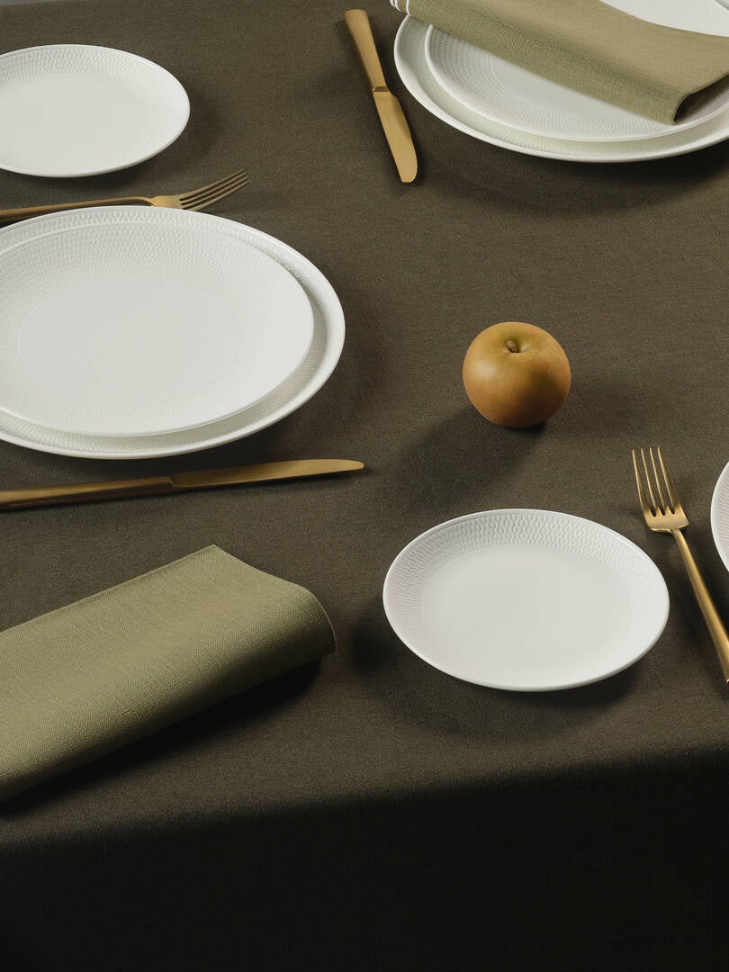 ジオの魅力は、何といっても“組み合わせ自在”なところ。温かみのある白いファイン・ボーン・チャイナのシンプルなフォルムは、すでにお持ちの食器とも自然に調和し、プレートやボウル、マグなどを組み合わせることで、美しいリズムを生み出します。料理のジャンルを選ばず、カジュアルにもフォーマルにも対応できる懐の深さは、日々の暮らしを軽やかにしてくれる存在です。