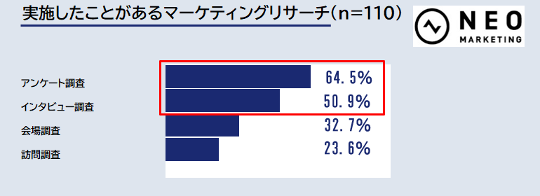 その結果、半数以上の方が「アンケート調査」「インタビュー調査」を活用したことがある結果となりました。