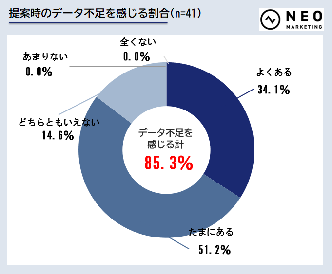 提案の根拠・データを求められた際に、データ不足を感じる割合(n=41)