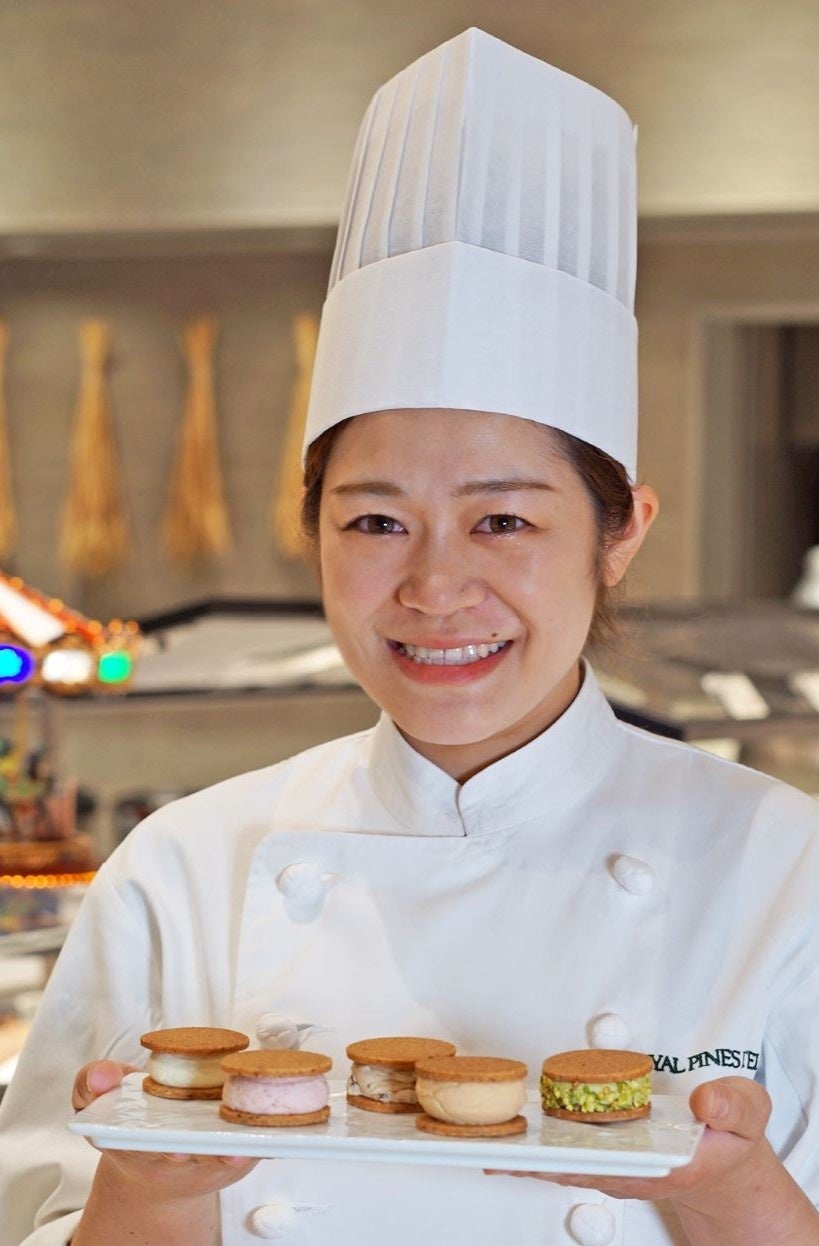 休日はカフェ巡りが趣味の、入社5年目のフレッシュなパティシエ。主にクッキーやマカロン、シュークリームなどを担当しています。コメント:『おいしいことはもちろん、楽しさ溢れるバターサンドを作りたい。』そのような思いから、この『ロイヤルバターサンド』を考案しました。一口食べたときの甘さ・香り・食感などの楽しさが口に広がるようにバランスを考慮し、試行錯誤しながら、配合にこだわり、心を込めて作っています。