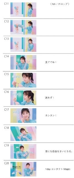 今回の「マジカル☆ハンドダンス」篇では、浜辺美波さんがMagicを手に取りながら、手品のような華麗なハンドダンスを披露しています。はじめは浜辺さんが手に1枚だけ持っていたかのように見えたレンズケースが、一瞬で複数枚に早変わりします。コンパクトさや、スマートタッチ仕様で裏表の確認が不要な手軽さを軽やかな歌にのせ、ダンスとともに伝えています。つい真似をしたくなるようなリズミカルな浜辺さんのハンドダンスにご注目ください。