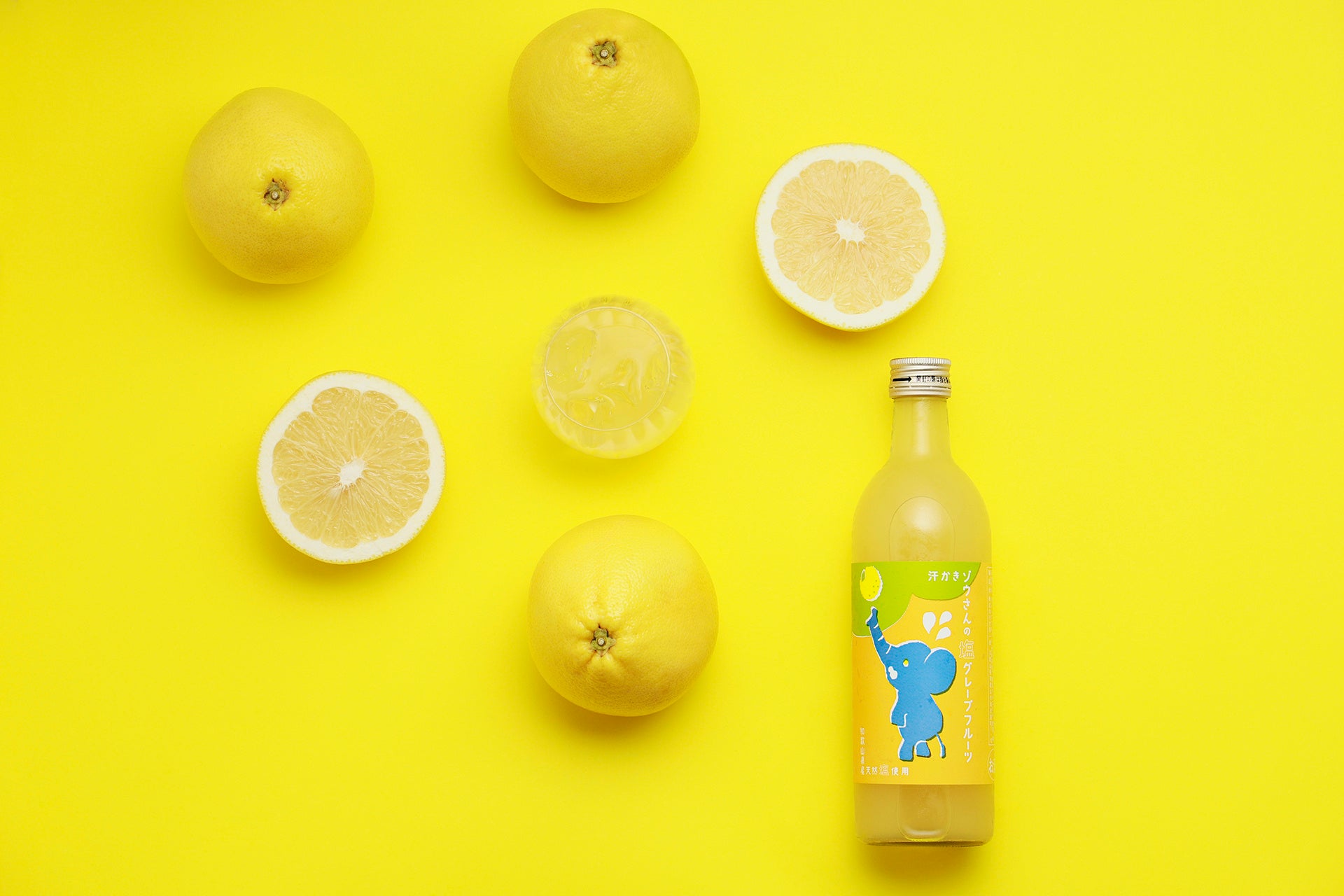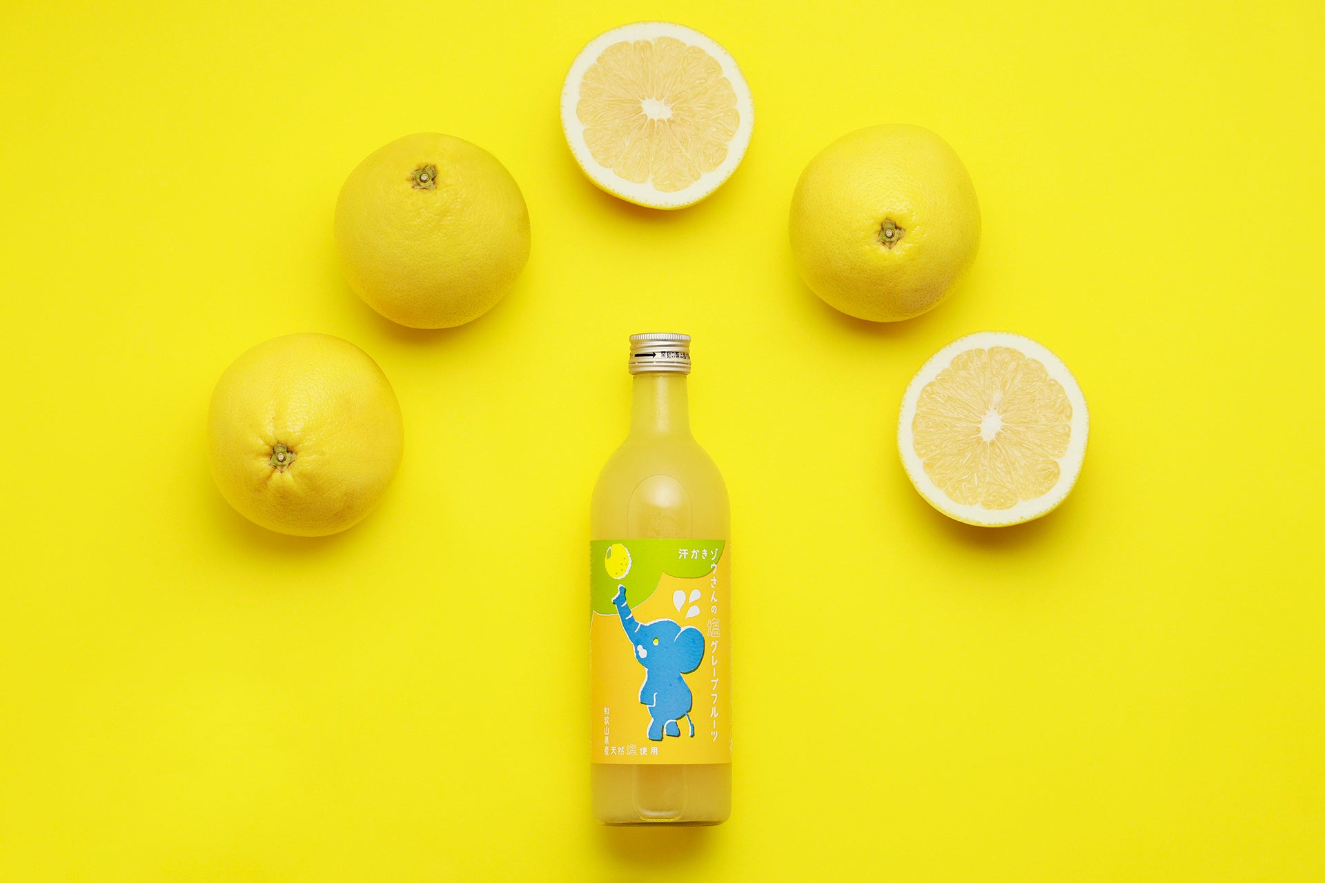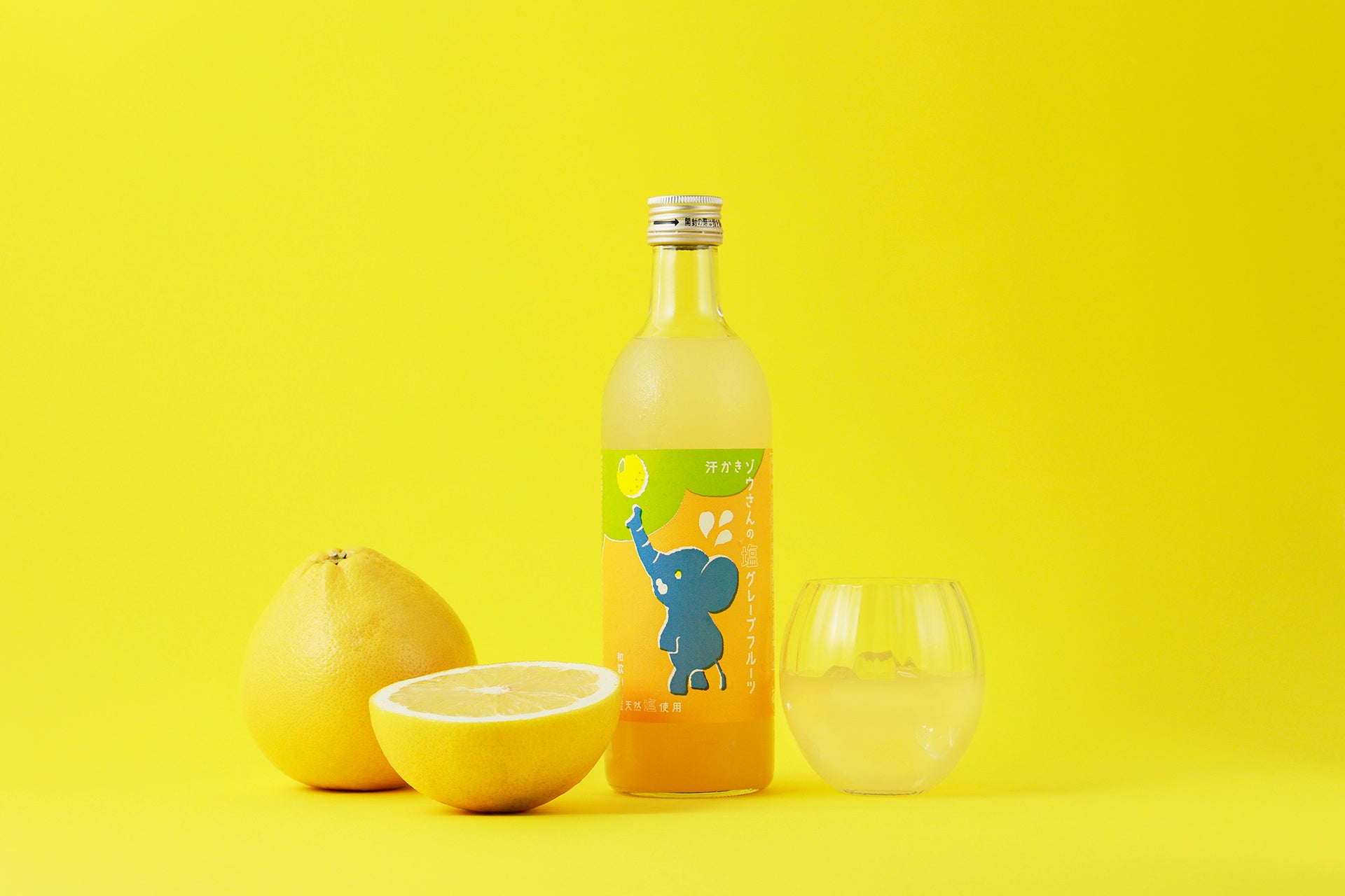 食いしん坊の汗かきのゾウさん。こだわりの宮崎県産グレープフルーツ「月夜実(つくよみ)」を100%使って、爽やかなお酒を造りました。和歌山県の天然塩を入れたら、後口に甘みも加わります。さっぱりと過ごしたい夏にぴったりのお酒です。