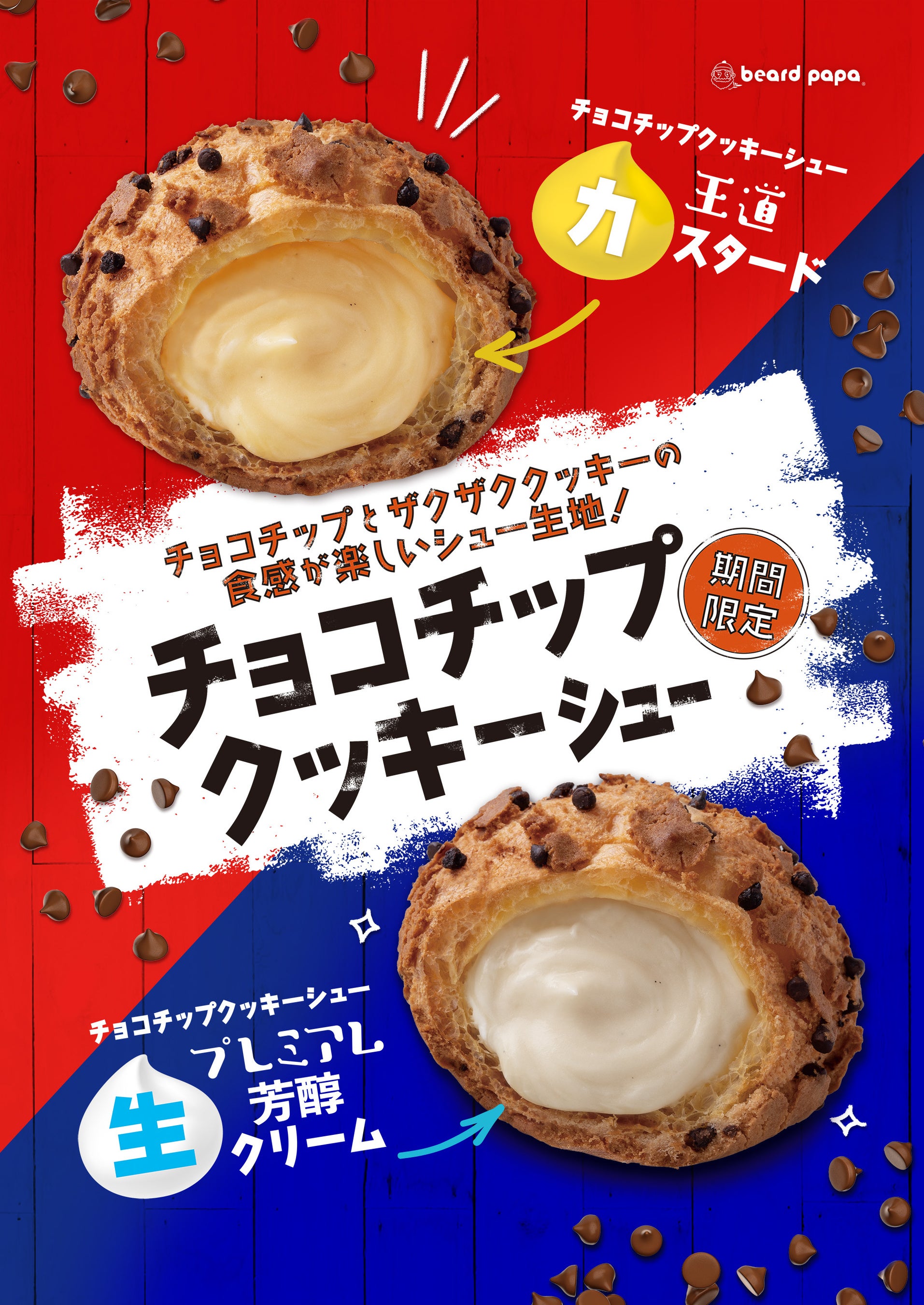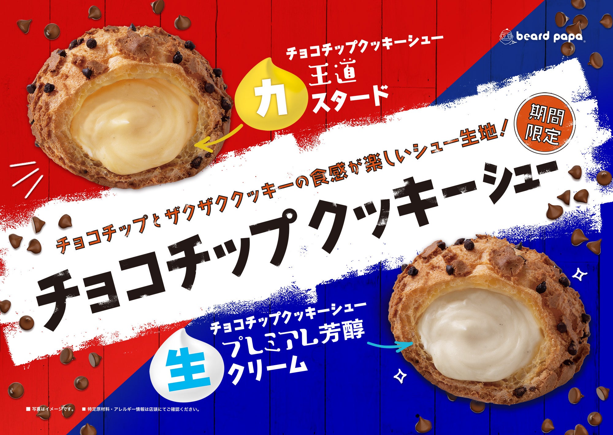 ビアードパパからリッチな味わいが毎年人気の“プレミアム芳醇生クリームシュー”と、ザクザクとした食感が楽しい“チョコチップクッキーシュー”が12月限定で登場