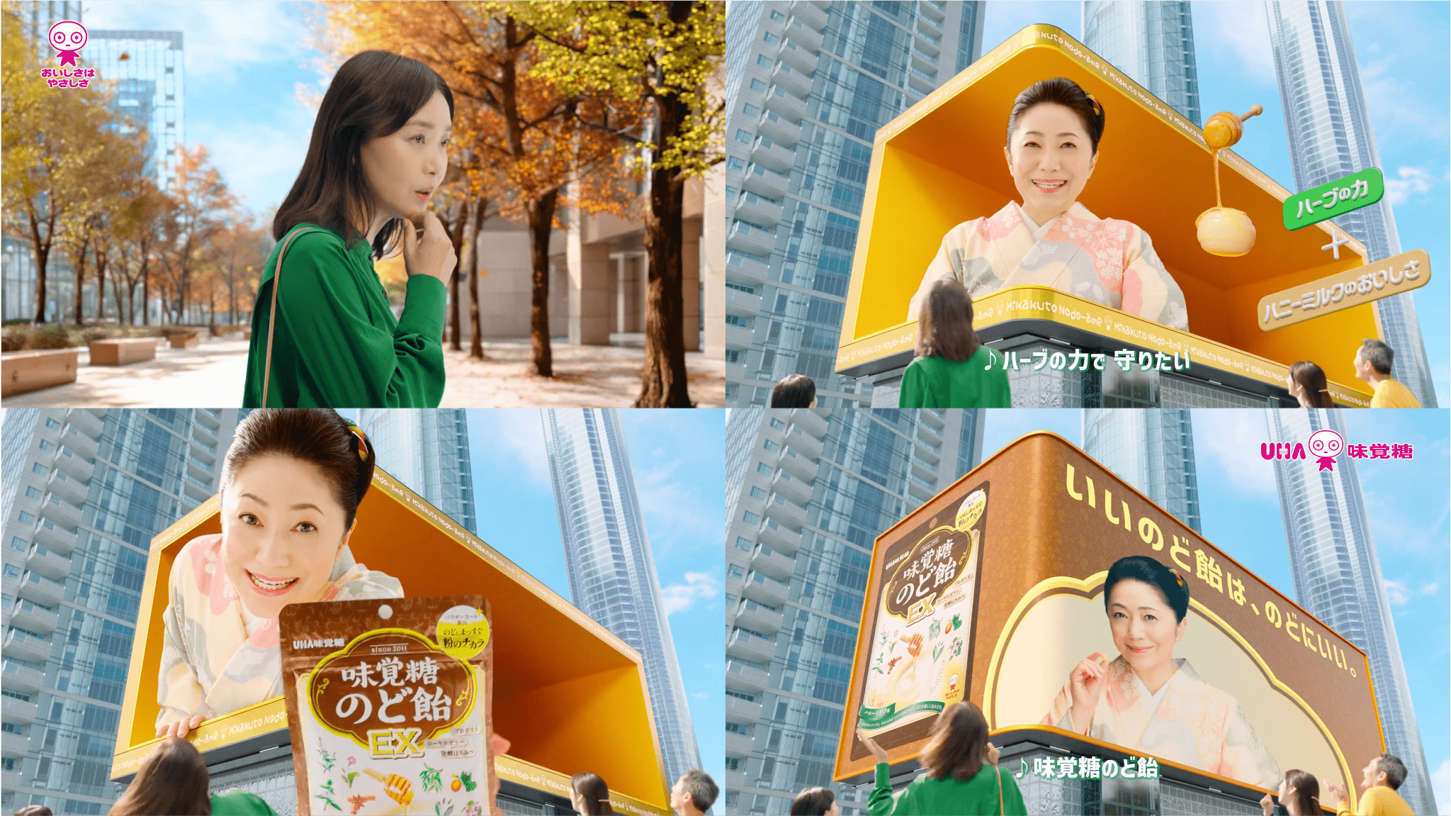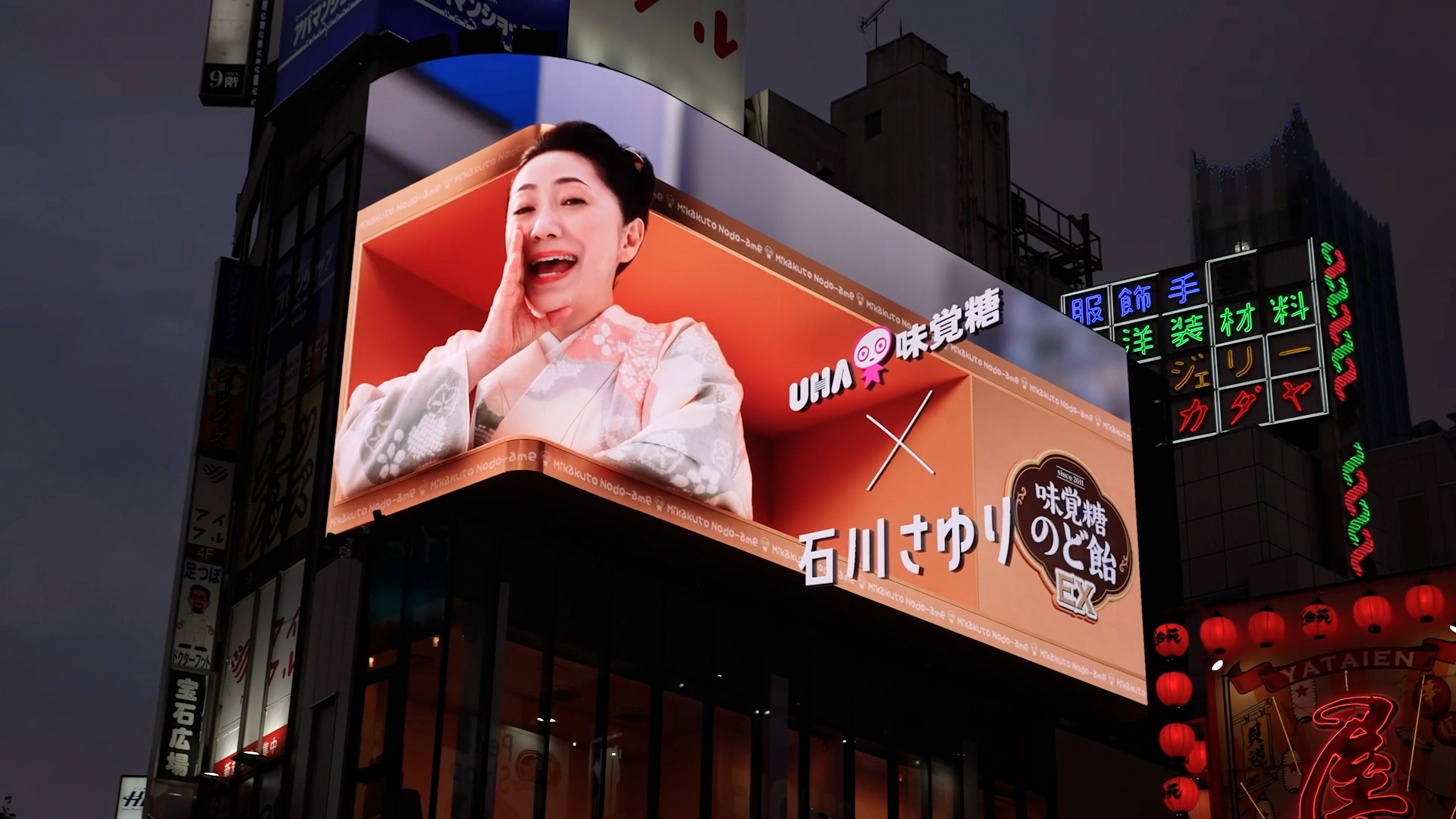 UHA味覚糖株式会社(本社:大阪市中央区、代表取締役:山田泰正)は、のどにおいしい本格のど飴󠄀「味覚糖のど飴󠄀」のTVCMを11月25日(土)より全国でオンエアいたします。前回に引き続き、CMキャラクターは石川さゆりさん、作曲はホフディランの小宮山雄飛さんが担当。石川さゆりさんが音楽に合わせ約66mの”3D巨大さゆり”となり、街頭ビジョンから飛び出すユニークなCMが完成しました!合わせてSNSキャンペーンを実施するほか、新宿駅東口のクロス新宿ビジョンにて、3D街頭ビジョンも実施いたします。