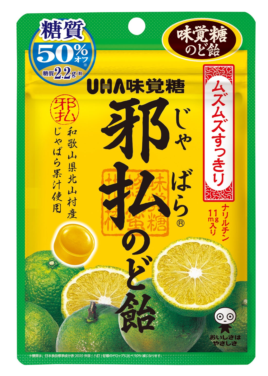 また1粒(4.5g)あたり糖質2.2gと糖質を50%オフにしており、 じゃばらの味わいを活かしたスッキリとした爽快感をお楽しみください。※糖質は、日本食品標準成分表2020年版(八訂)記載のドロップに比べ50%減になります。