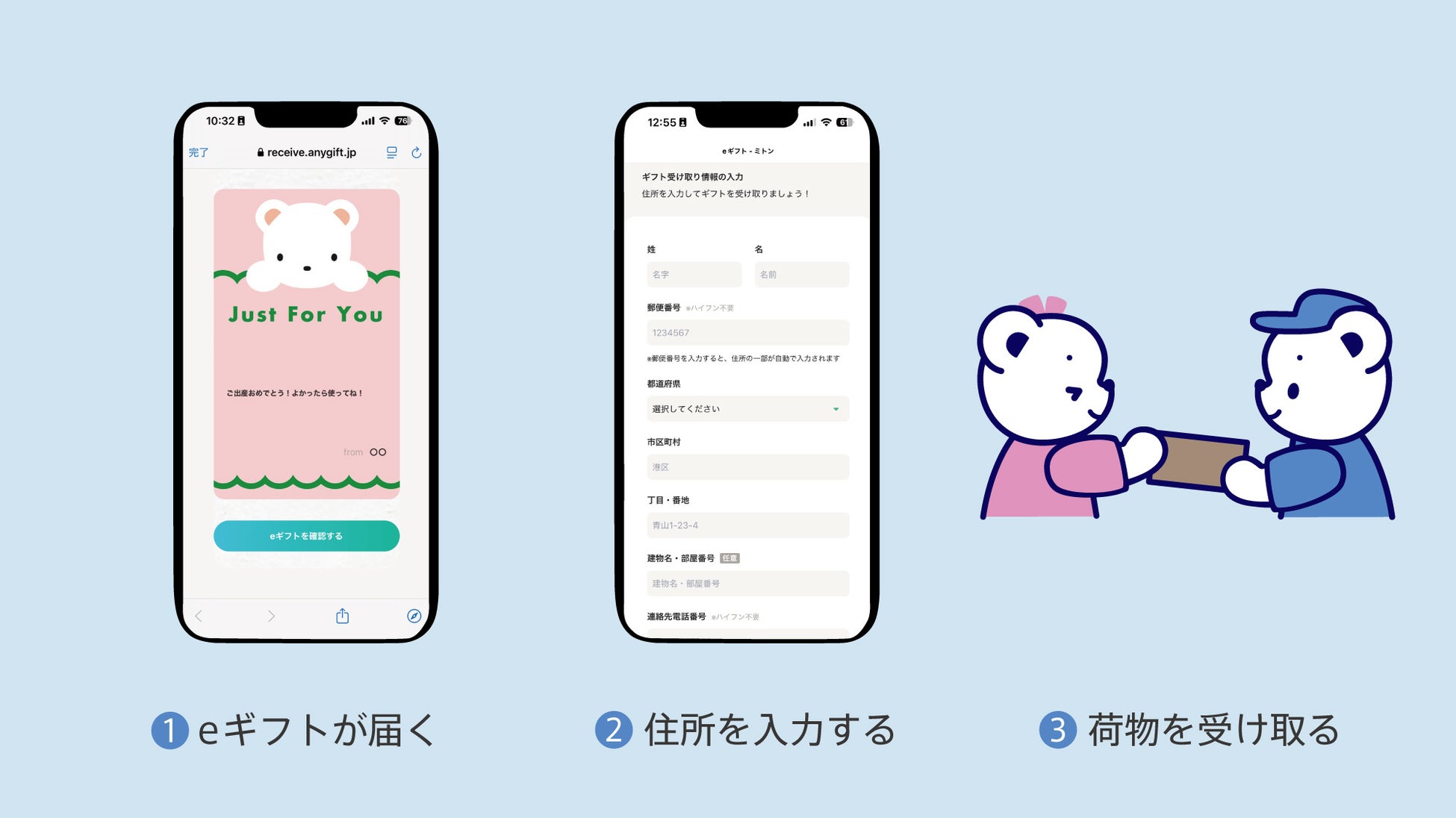 報を入力するだけで、ギフトを簡単に受け取る
