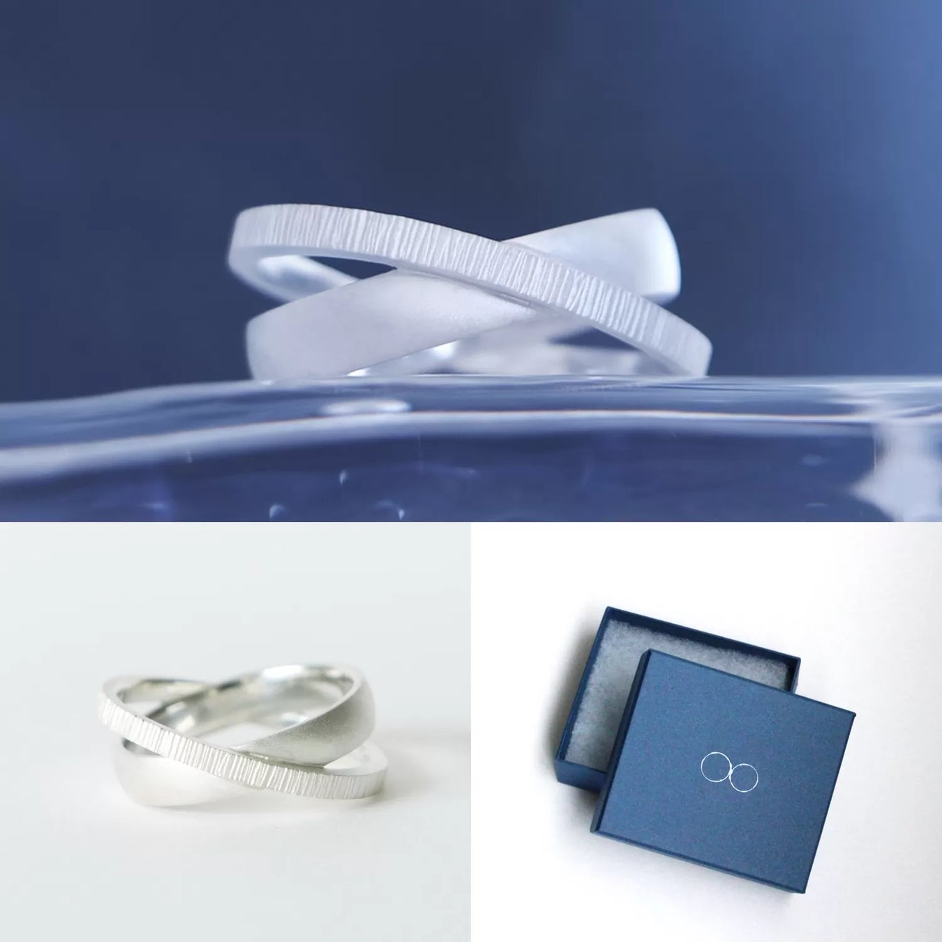 2本の個性の違う指輪が重なり1つの指輪になったデザインのように、楽しいことやそうではないこと、長所と短所など二面性のある事のどちらも愛し大切にする気持ちで指輪を身につけていただければ嬉しいです。