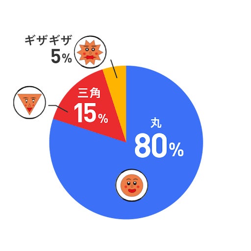 ・「アンパンマンの要素が入っている」「全く入っていない」「その中間」の形を用意し、0~2歳半の20人に好きなものを選んでもらって結果、80%が「アンパンマンの要素が入っている」形を選んだ。