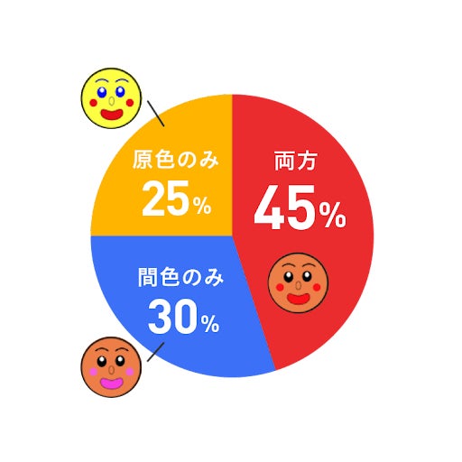 ・アンパンマンの要素が入った色を好むと回答した子どもは45%