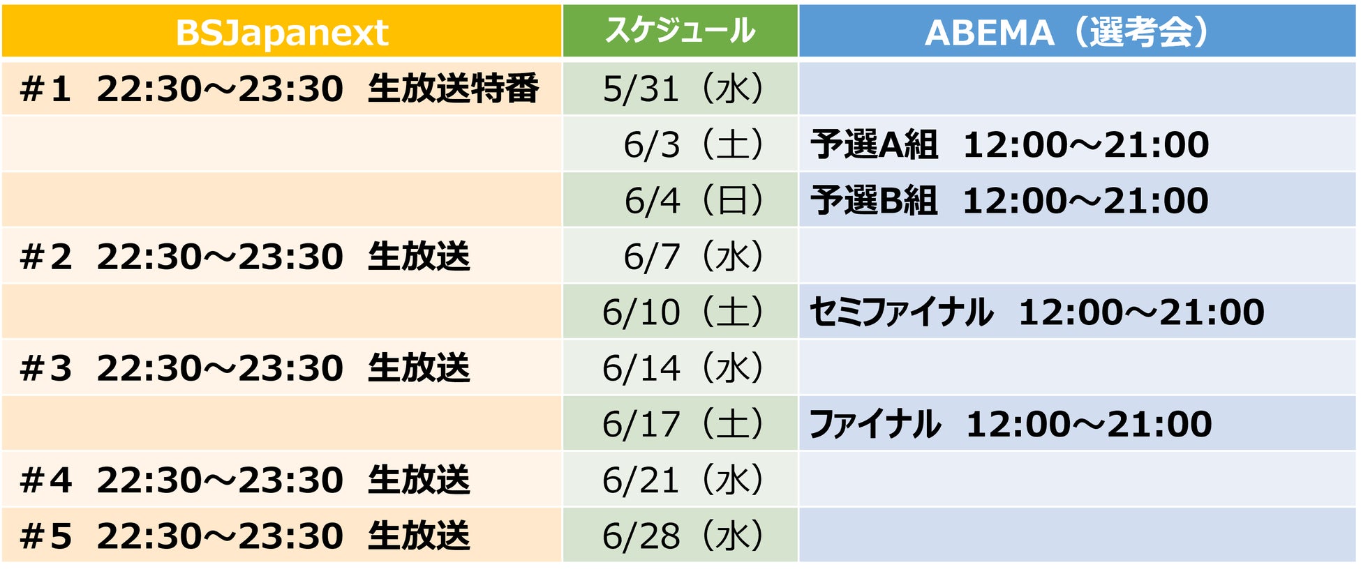 競技を含めた選考会の様子は6/3(土)~ABEMAで生放送します。