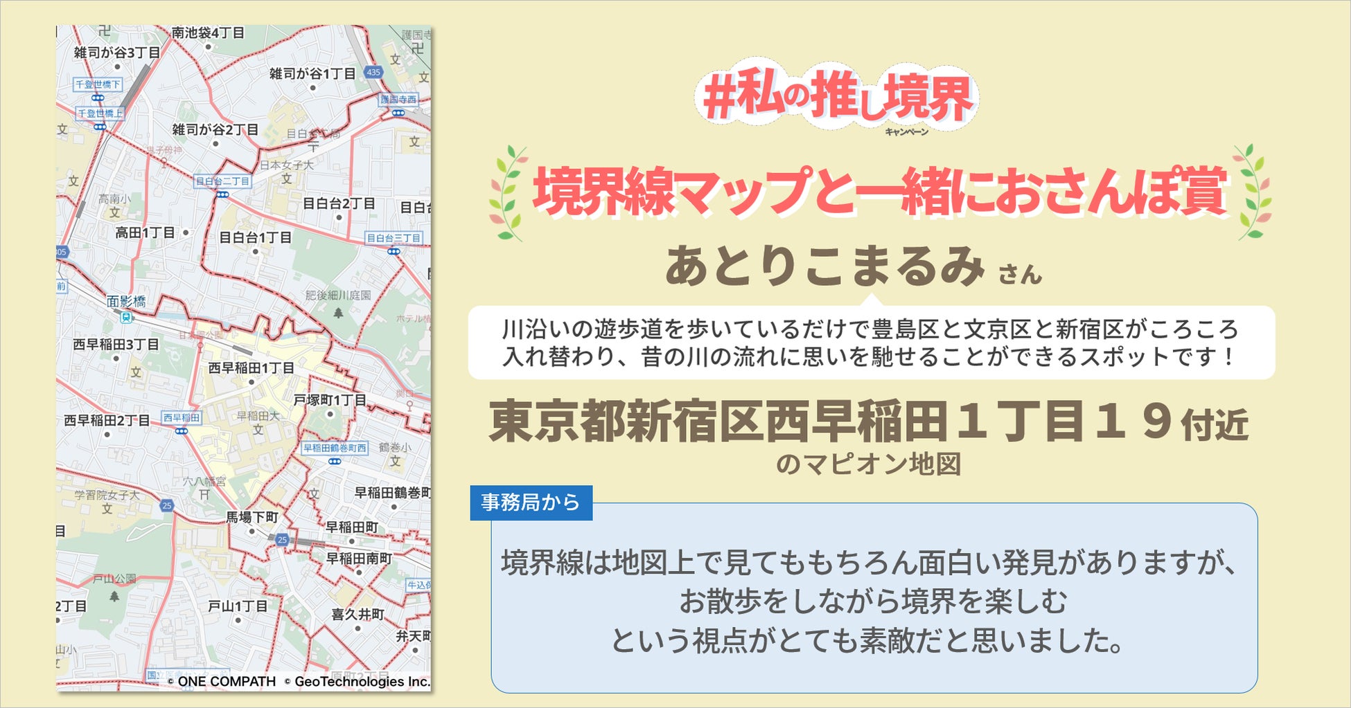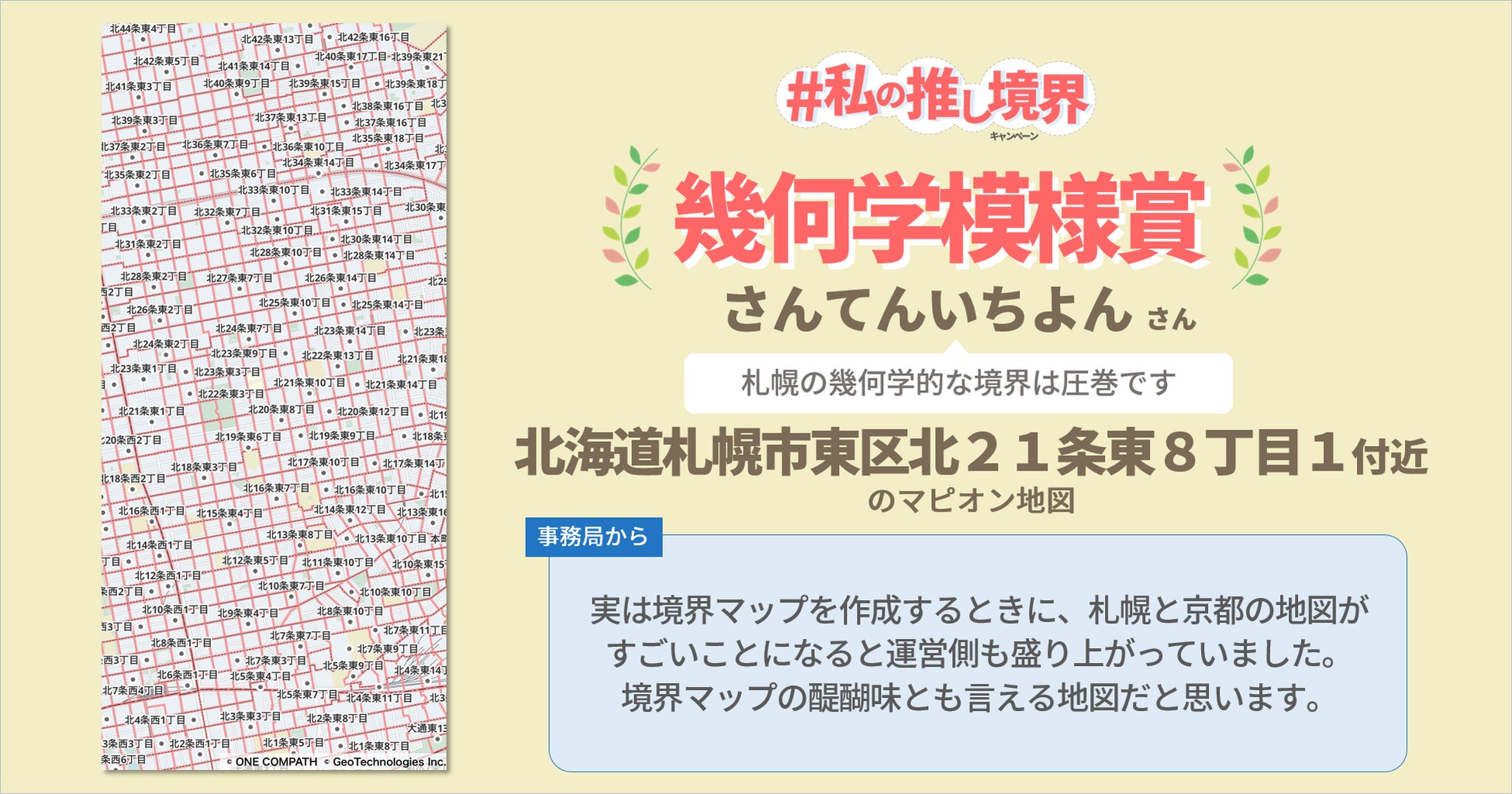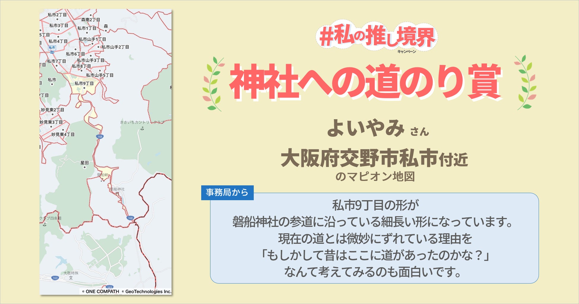 凸版印刷株式会社のグループ会社である株式会社ONE COMPATH(ワン・コンパス)が運営する地図アプリ「地図マピオン」(iOS版)は、2022年8月1 日(月)~8月31日(水)までに開催したTwitter投稿キャンペーン「#私の推し境界」キャンペーンの結果を発表します。投稿いただいた作品の中から厳正な選考の結果、5賞7境界を選出しました。
