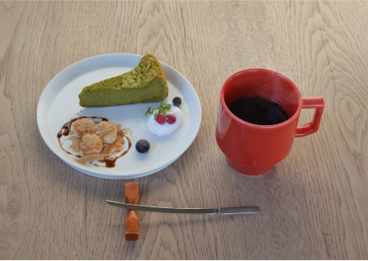<嬉野抹茶とホワイトチョコのガトーショコラ、佐賀産白玉、ドリンク>