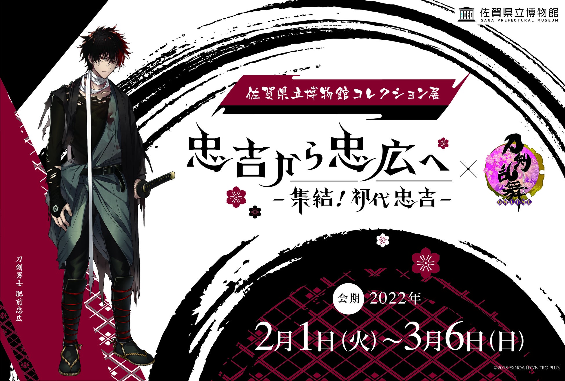 佐賀県は、情報発信プロジェクト「サガプライズ!」の一環として、2022年2月1日(火曜日)から3月6日(日曜日)まで佐賀県立博物館で開催されるコレクション展「忠吉から忠広へー集結!初代忠吉ー」にて、刀剣男士 肥前忠広に所縁のある刀工・初代肥前忠吉の刀18口(ふり)ほか、歴代忠吉・忠広の作品が一挙に展示されることを記念し、本展覧会とPCブラウザ&スマホアプリゲーム『刀剣乱舞-ONLINE-』とのコラボレーションを実施します。