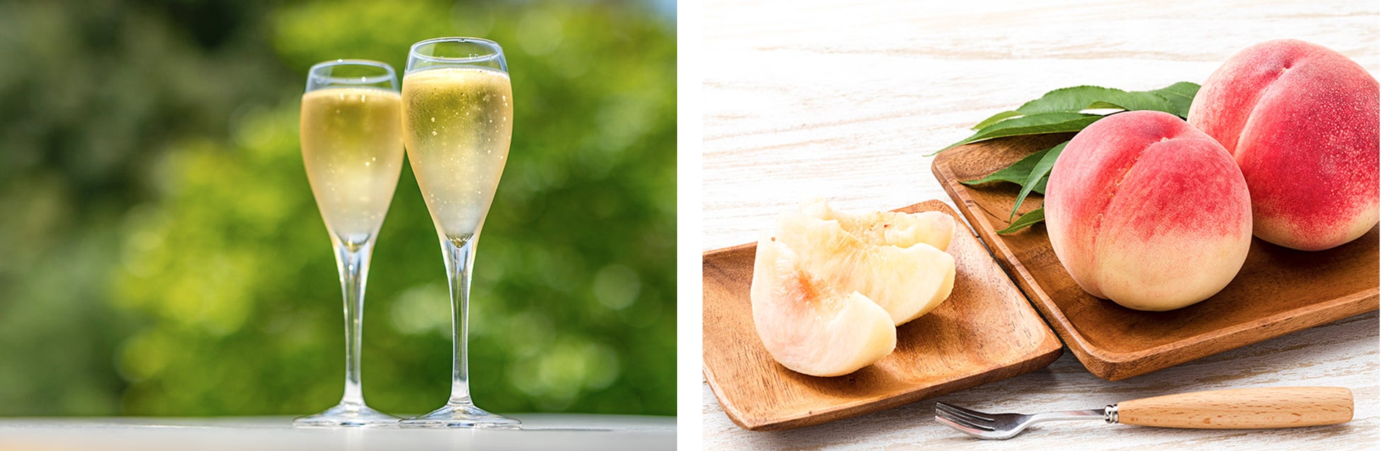 ジューシーなももに、キリっと冷えたスパークリングワインや白ワインを合わせるのは夏ならではの贅沢。