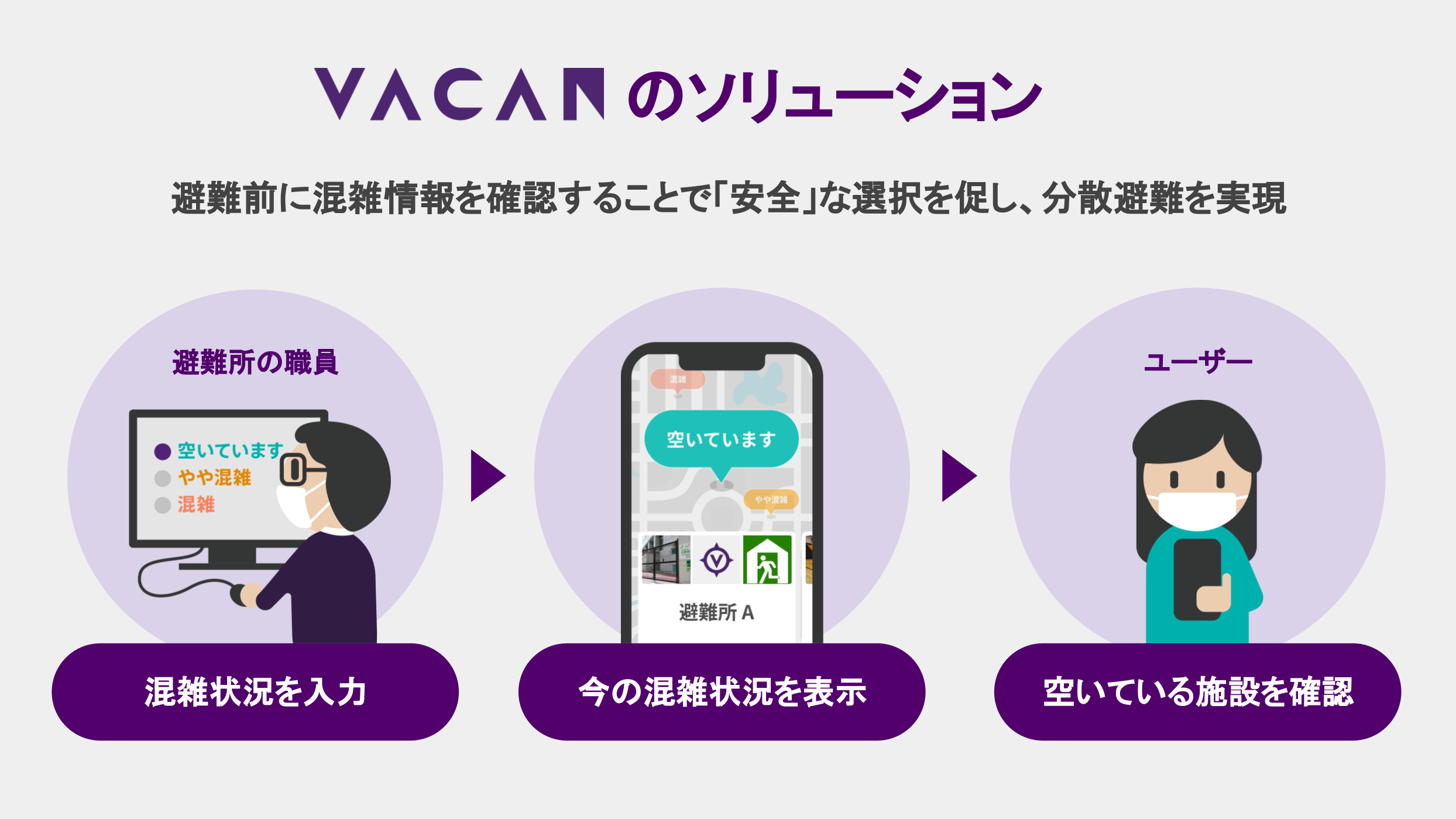 バカンは、地方自治体での災害発生時に安全な避難環境を実現するため、避難所の混雑可視化の取り組みを進めています。2020年にサービスを開始し、現在日本全国200以上の自治体様で導入されており、台風や地震などの自然災害の際や避難訓練などで活用されています。今回の協定では、当社が持つ混雑の可視化に関する独自技術やノウハウを活用し、新しい避難所運営に向けた検証を行います。