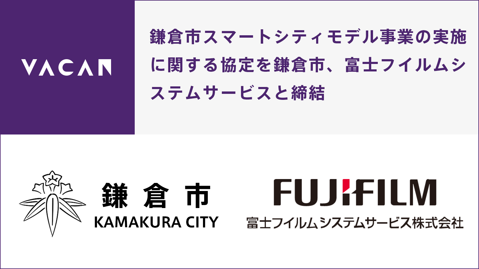 株式会社バカン、神奈川県鎌倉市、富士フイルムシステムサービスと鎌倉市スマートシティモデル事業の実施に関する協定を締結