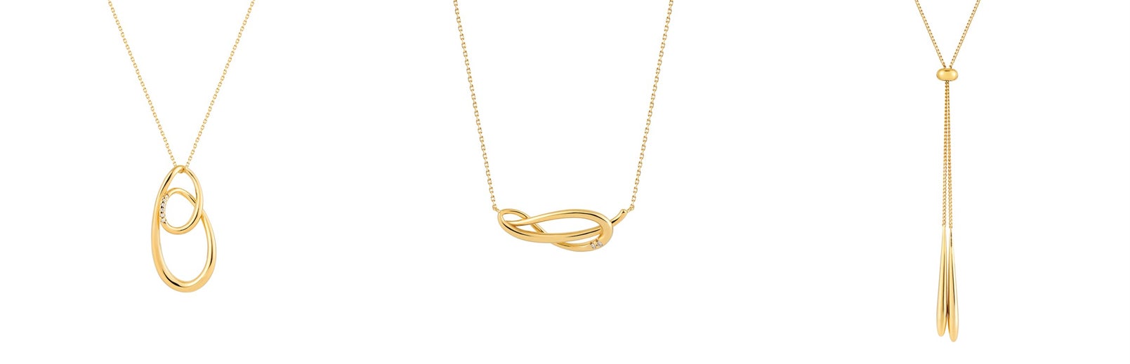 躍動感溢れる水の流れをイメージした、ボリューム感のある3種のネックレスが登場。360℃どこから見ても美しい立体的なラインにダイヤモンドの輝きを添え、フリーアジャスターの長めのチェーンと合わせたアイテムは、イエローゴールドのラインにダイヤモンドが溶け込み繊細に煌めきます。ワイドに広がる一筆書きのようなラインが今までのNoble of Waterにないフェミニンな印象を醸し出すネックレスや、2つのすっきりとしたしずくのバーがアクセントになったエレガントなラリエットネックレスも。トップスのデザインや全体のコーディネートに合わせて自由自在にアレンジできるネックレスは、一つ持っているだけでこなれ感を演出してくれるアイテムです。