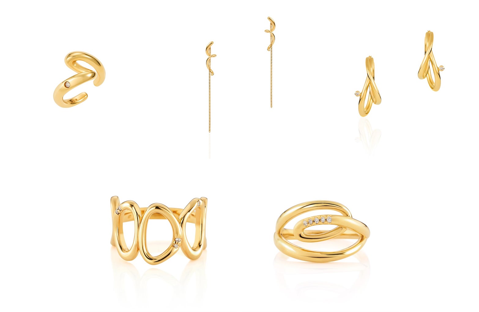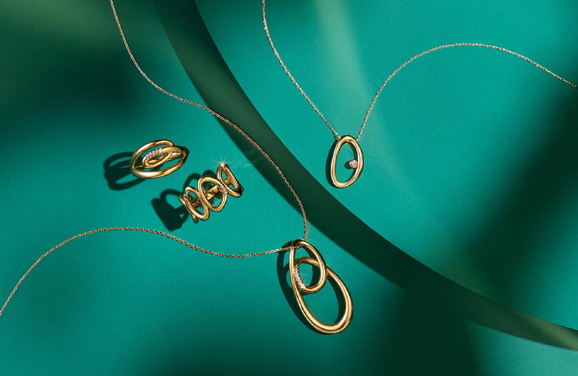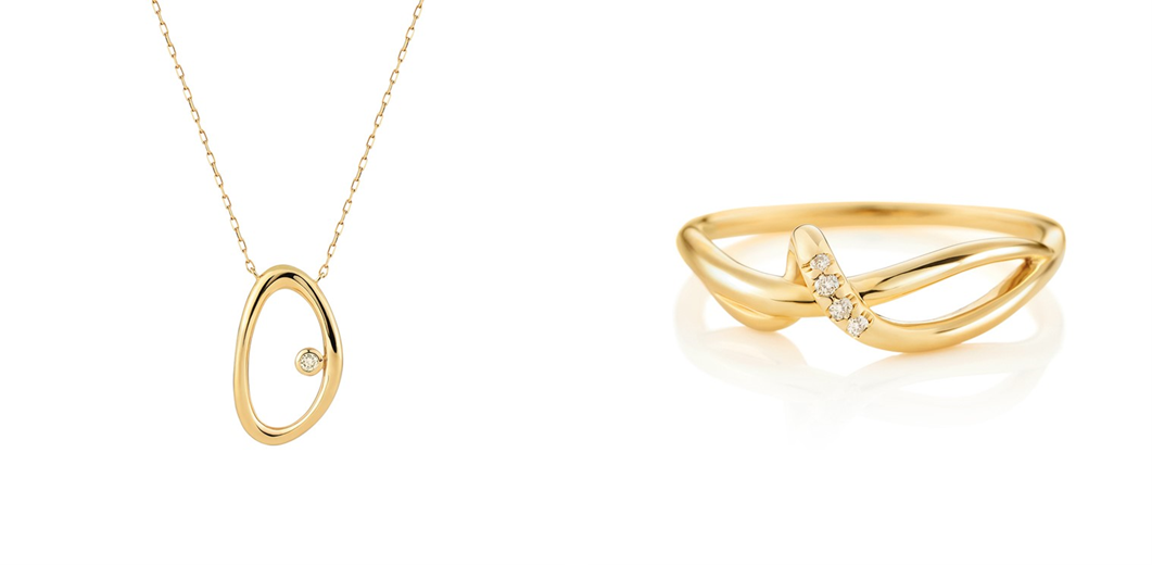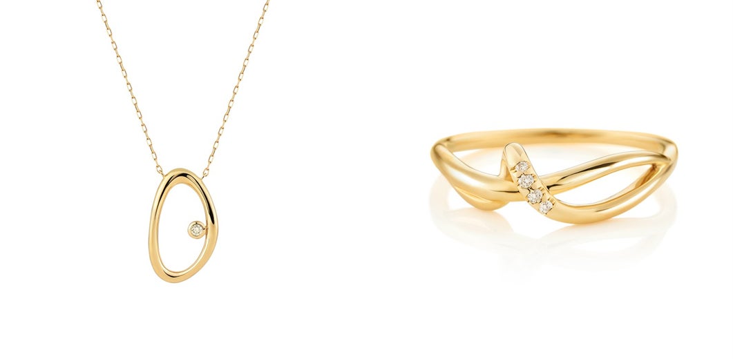 今回の新作は、水の柔らかく壮大な動きをイエローゴールドの地金で表現し、ダイヤモンドの輝きでアクセントを加えた、華やかでありながらも優しい表情を魅せるシリーズ。水の躍動感を映した曲線美がどこから見ても美しいラインを作り出すネックレスや、身に着ける人の動きに合わせて繊細に輝くリズミカルなピアスなど、1点でも存在感を放つ特別なジュエリーが揃いました。