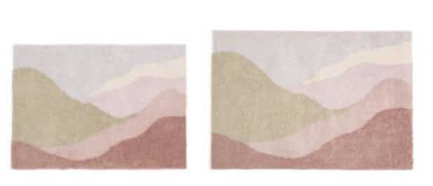 山の景色のような抽象的な柄をタフトで表現した印象的なラグです。インテリアになじみやすいナチュラルな色合いで、個性的ながらもお部屋になじむデザイン。マイクロファイバー素材を使用しており、ふかふかとしたリラックス感のある柔らかな触り心地です。
