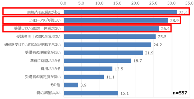・「受講している際の一体感がない」や「受講者同士の関りが増えない」なども多い
