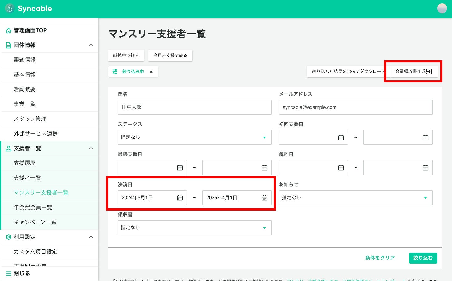 1年以内の支援分を対象に、マンスリー支援の領収書を1枚にまとめて発行できるようになりました。