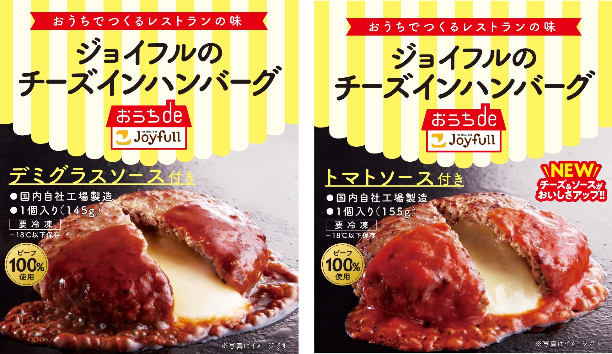 ジョイフルの冷凍商品ブランド「おうちdeジョイフル」♪「ジョイフルのチーズインハンバーグ デミグラスソース付き」「ジョイフルのチーズインハンバーグ トマトソース付き」を新発売!