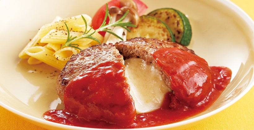 ◎トマトソース&チーズがおいしさUP!ビーフ100%ハンバーグとの相性抜群!