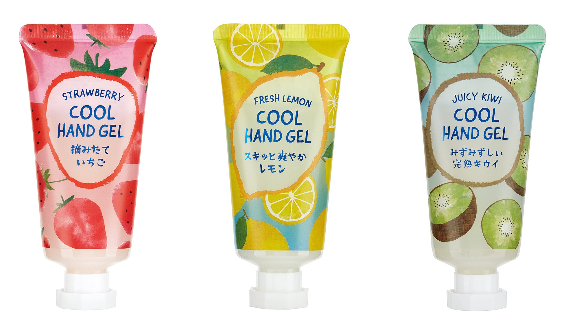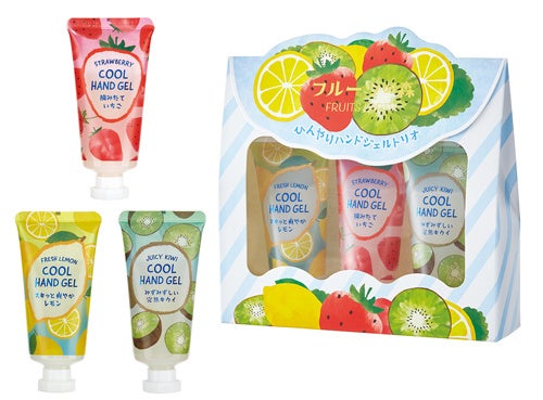 夏の手肌をさっぱり涼しくうるおす「ひんやりハンドジェル」のフルーツ3種セット。
