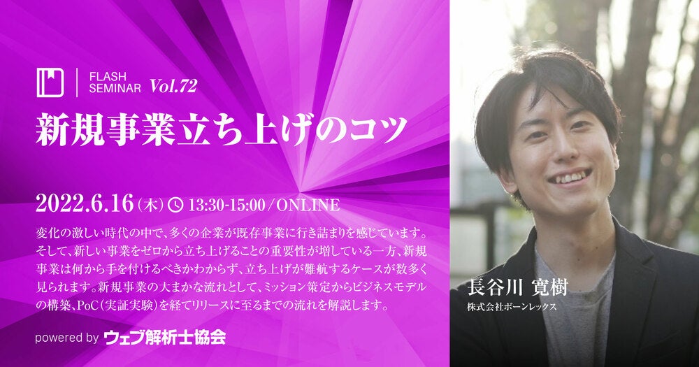 2022/06/16(木)13:30~ FlashセミナーVol.72【無料】新規事業立ち上げのコツ
