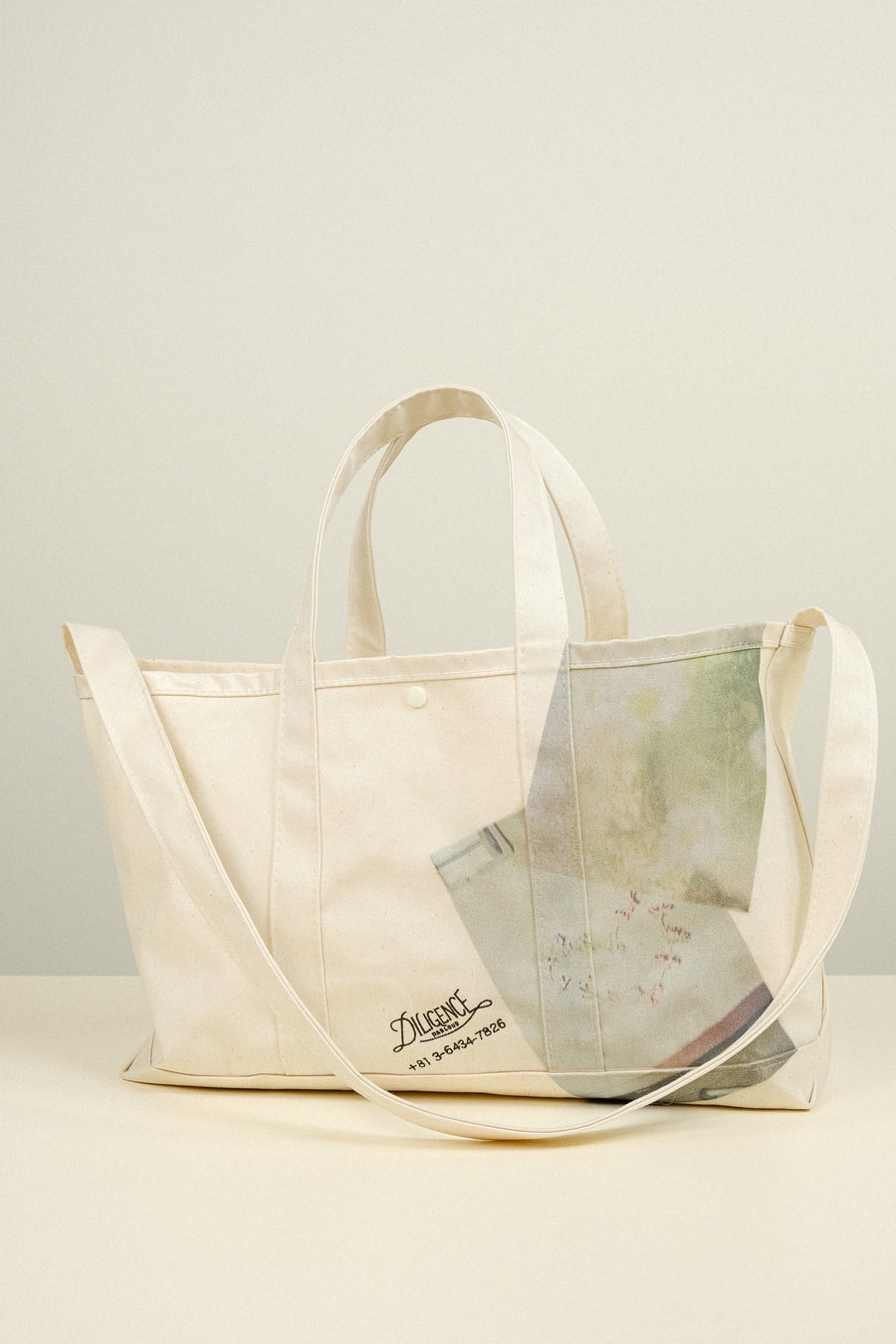 コラボレーション商品として、TRUECOTTON素材のフーディ、長袖Tシャツ、トートバッグ2種、ポーチの計5アテムを制作。写真家の工藤司さんが撮影した、幻想的な色彩で切り取ったお花の写真をプリントに用い、越智さん自らがデザインしました。5アイテムは、 2024年8月23日(金)から9月16日(月)の期間、ZOZOVILLAと豊島の運営する地球に良いことを提案するECサイトReCirculet(リサーキュレット)とDILIGENCE PARLOURのオンラインサイトにて受注販売いたします。