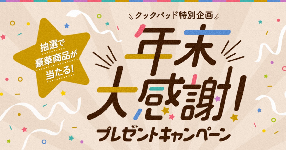 クックパッド、各企業と連携し、レシピサービスユーザー向け「年末大感謝!プレゼントキャンペーン」を開催